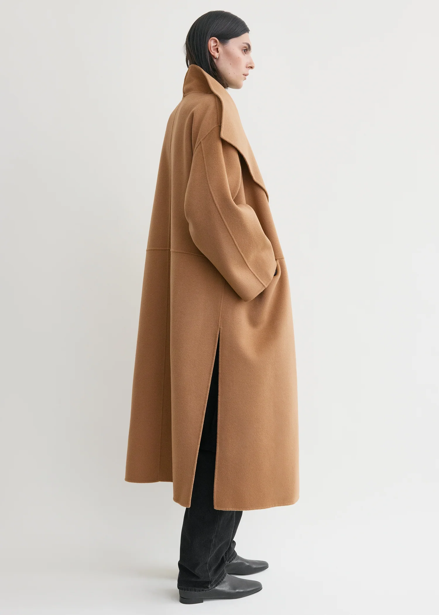 Signature TOTEME coat crafted from soft doublé, a wool-cashmere winter favorite crafted by hand-stitching two fine layers to achieve a double-faced finish with clean seams. It has an oversized silhouette with fluid shawl lapels and an open front which makes it perfect for layering, then is complete with inseam pockets and side slits. Coordinate it with the Long doublé scarf in the same color.