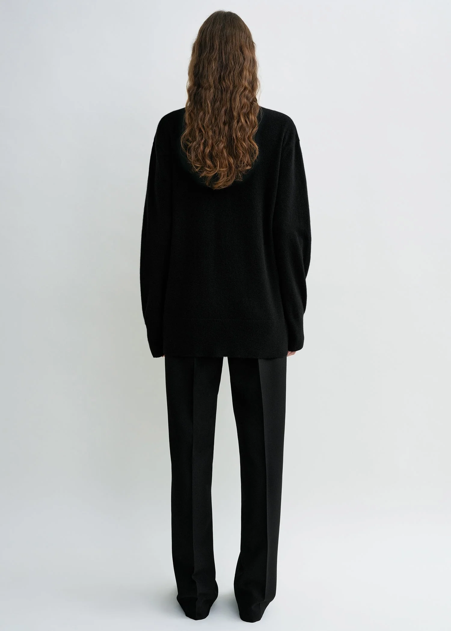Designer's note: "This TOTEME Garderob cashmere knit has been reimagined with a relaxed, elongated silhouette and a deep V-neckline that reveals a hint of skin. Wear it as a fine, soft layer on chilly evenings or style it over a white crew-neck tee as a considered contrast.”