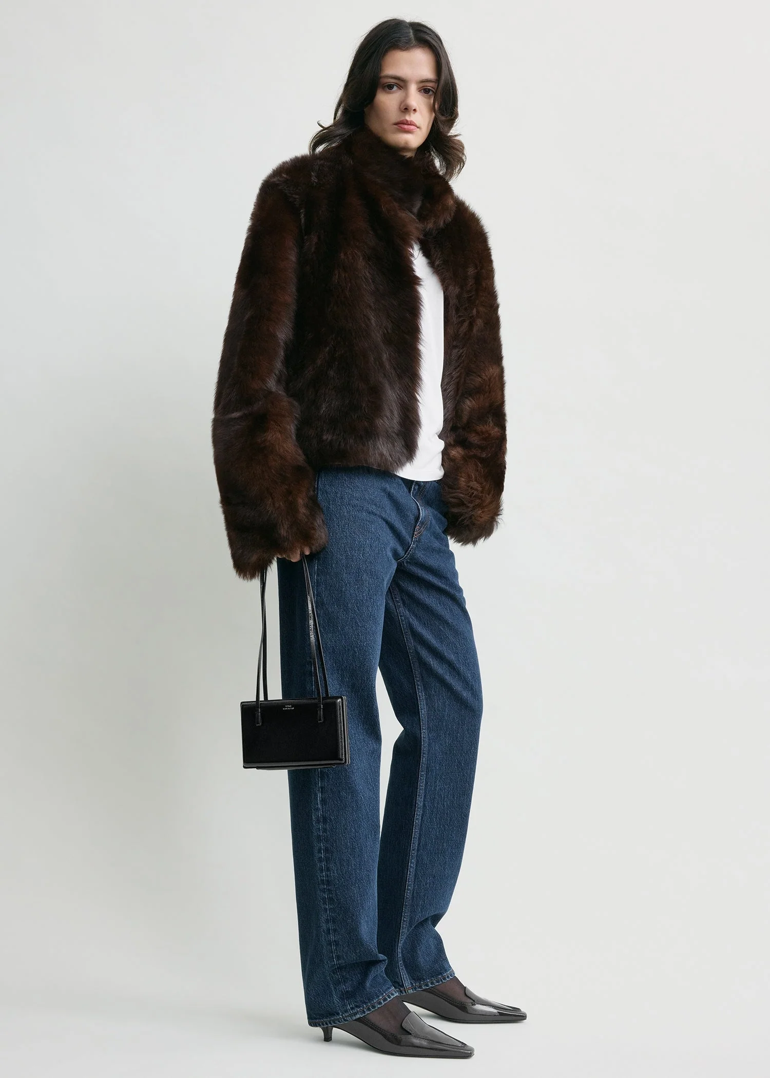 The Cocktail bag is imagined for directional occasion looks. It consists of a compact box made from glossy and slightly crinkled naplack leather, suspended from two fine handles. Use it to store your phone, lipstick and keys during an evening event.