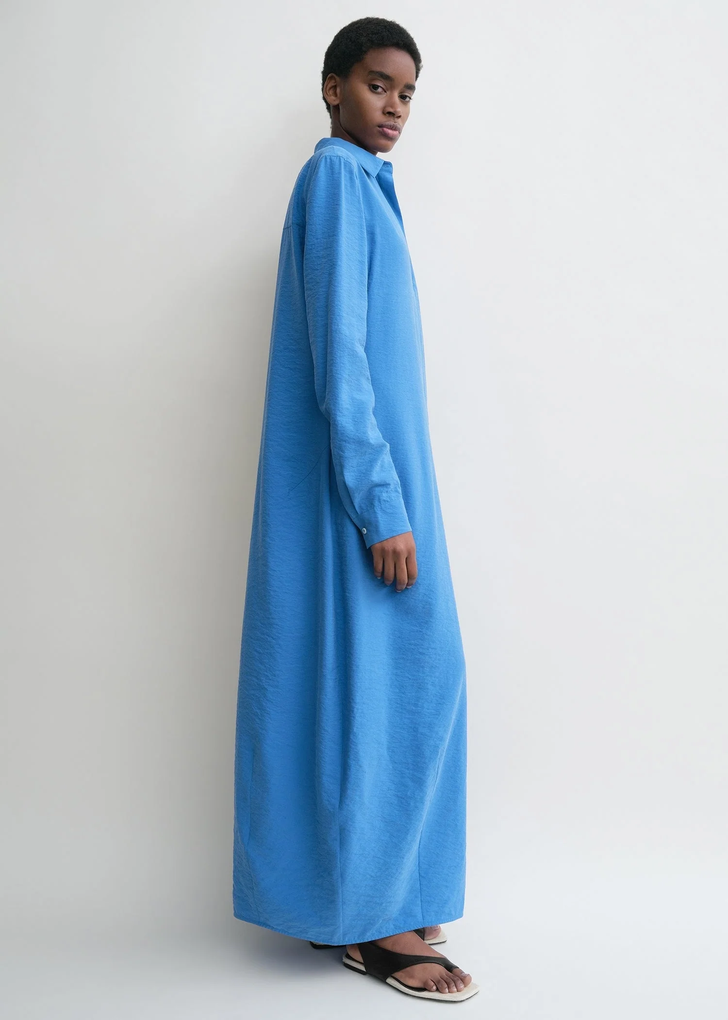 Parachute-style TOTEME shirtdress crafted from an airy, light and softly crinkled silk blend. It has an ample egg-shaped skirt with side pockets and a concealed button placket. Complement the ankle-grazing length with sandals.