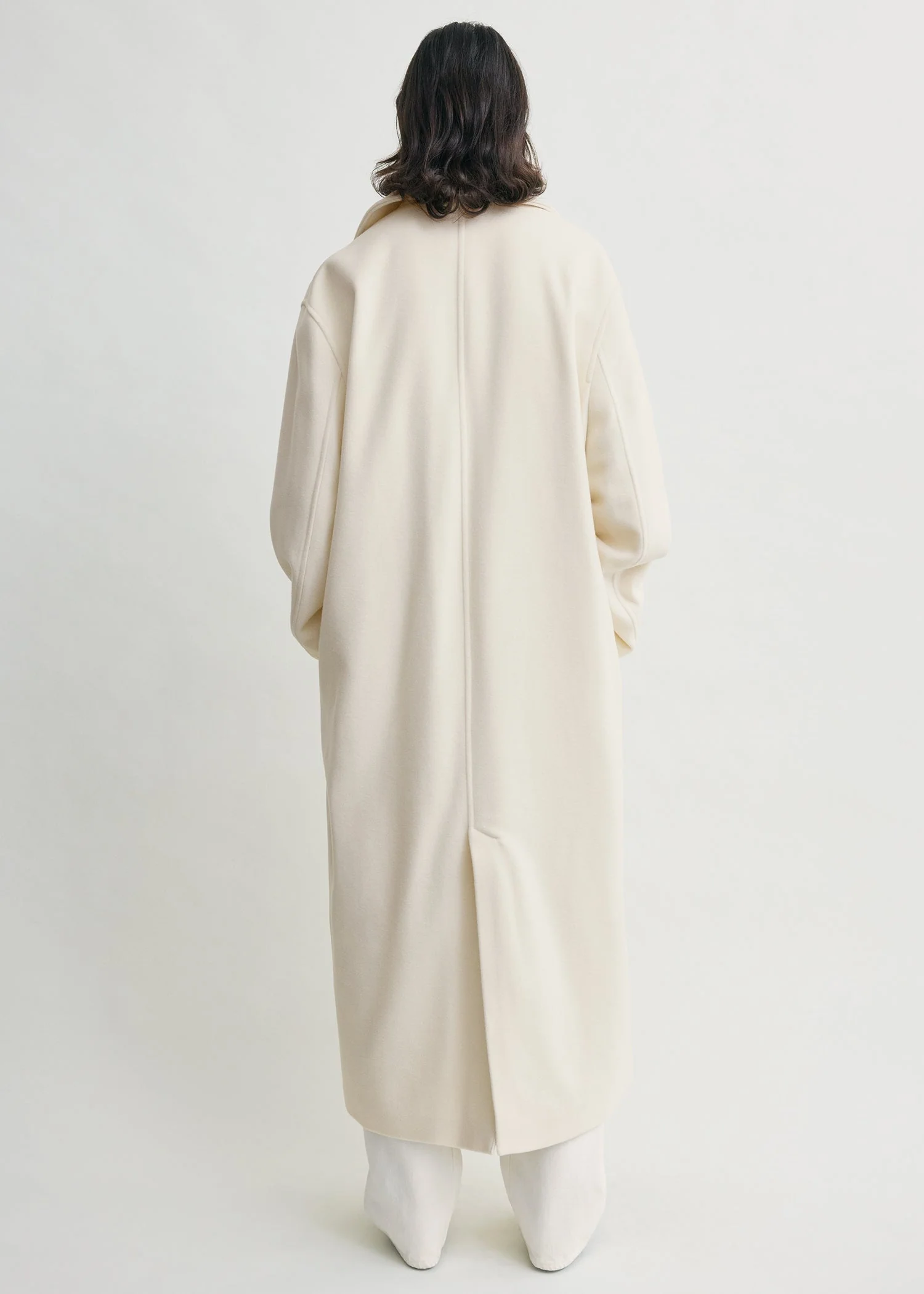 Statement overcoat imagined for winter days spent in the city. It is crafted from warm wool-blend felt to a long, oversized silhouette fastening with a double-breasted button front.