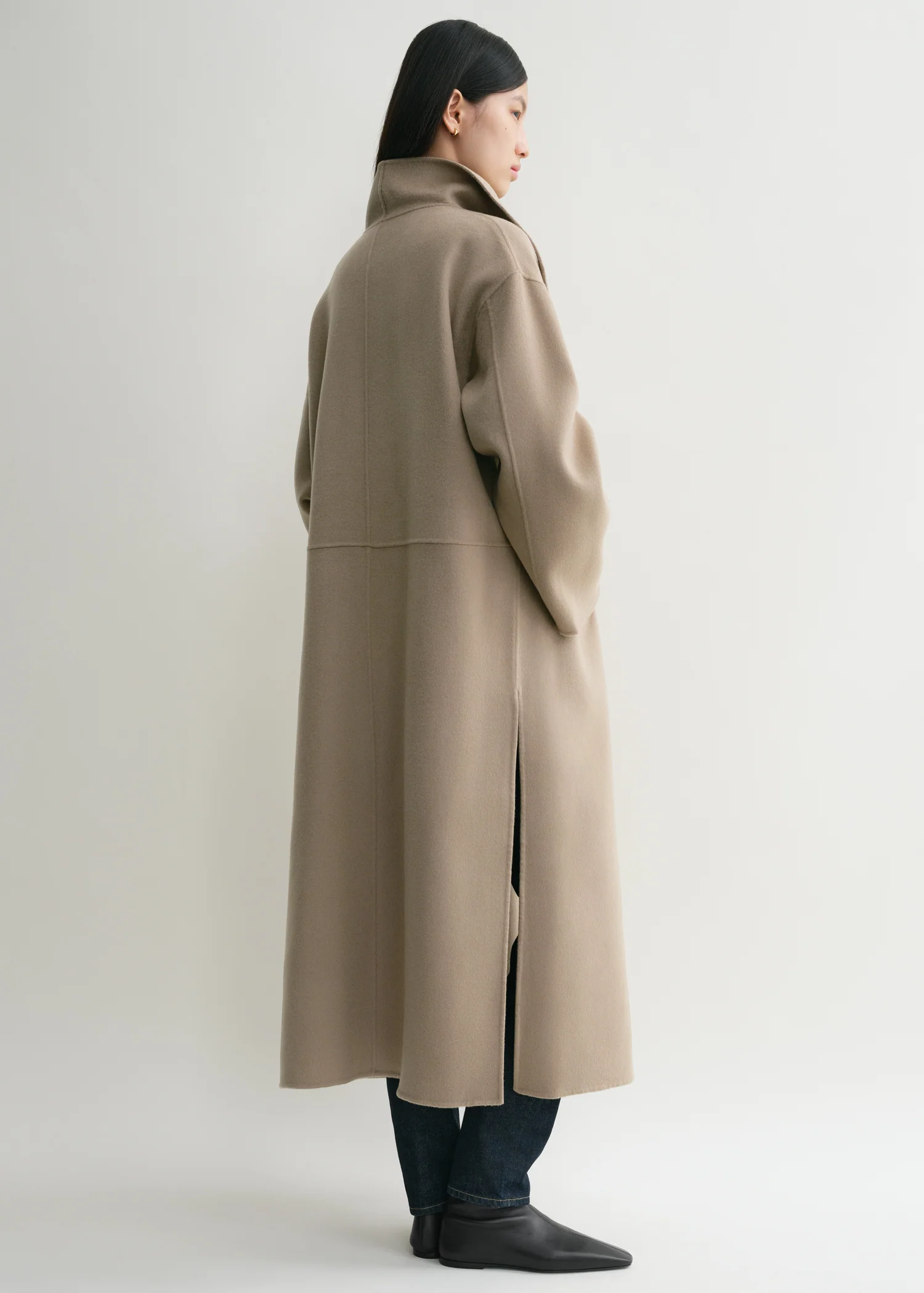 Signature TOTEME coat crafted from soft doublé, a wool-cashmere winter favorite crafted by hand-stitching two fine layers to achieve a double-faced finish with clean seams. It has an oversized silhouette with fluid shawl lapels and an open front which makes it perfect for layering, then is complete with inseam pockets and side slits. Coordinate it with the Long doublé scarf in the same color.