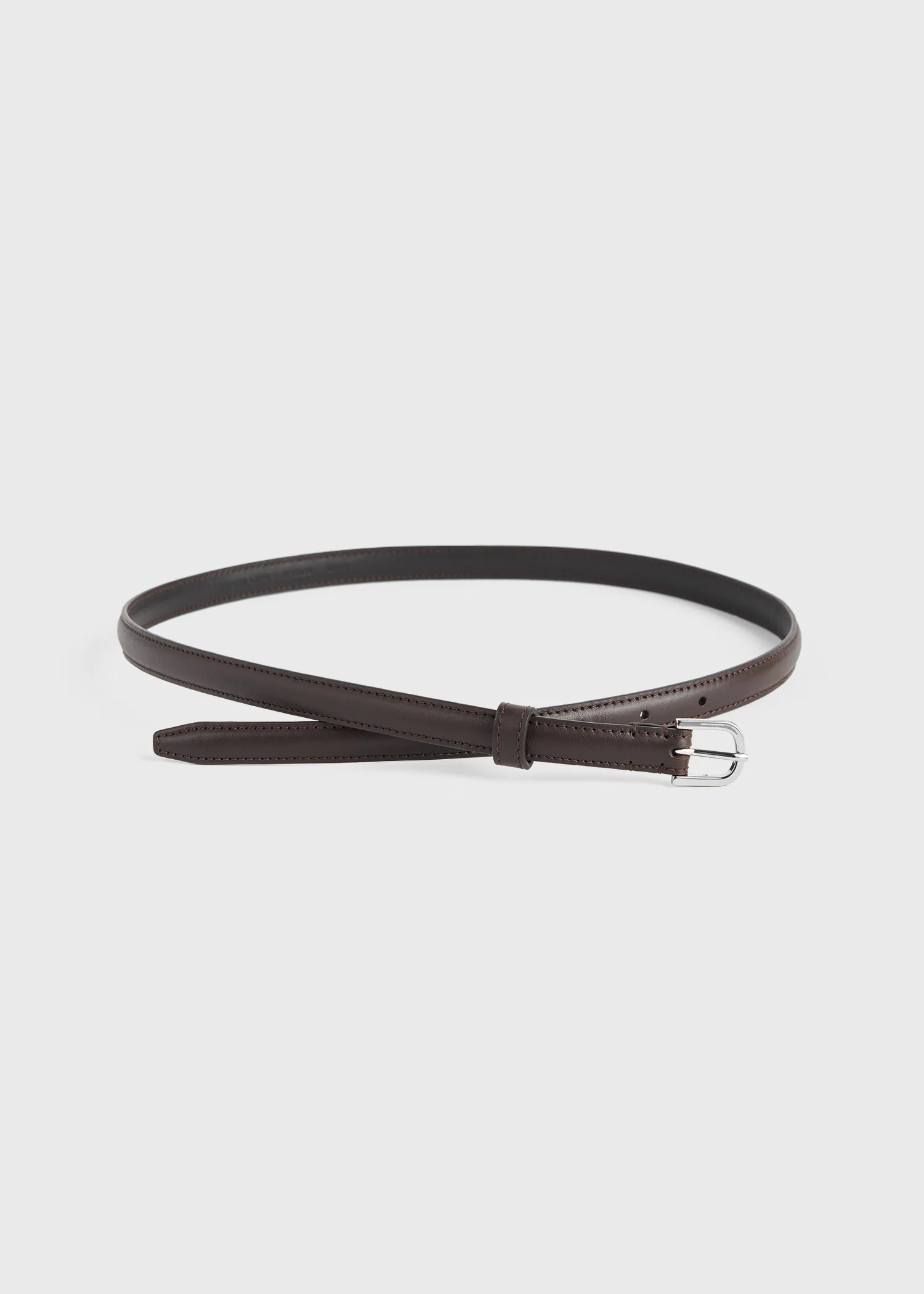 TOTEME's distinctive belt is shaped to a slim silhouette to fit smaller belt loops and fastens with a silver-tone metal buckle. It is made in Italy from responsibly sourced Nappa leather and comes in three different lengths. Style it with tailored trousers and jeans.